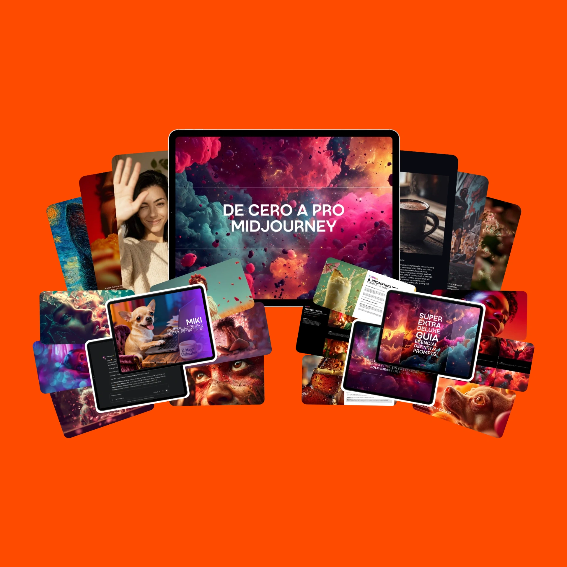 Midjourney de Cero a Pro es el eBook que te enseña a hablarle a la IA para crear exactamente lo que imaginas. No es teoría, es un atajo visual y práctico para ir de lo mediocre a lo Pro sin esfuerzo.